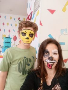 El taller de pintacaras es uno de los momentos más divertidos del hotel. Te dan pinturas y plantillas como ejemplos. La creatividad al poder: padres e hijos se pintan unos a otros, con resultados muy graciosos.