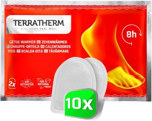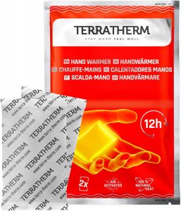 • Hay calefactores de manos y pies desechables y recargables. No deben estar e contacto directo con la piel porque pueden alcanzar hasta 60ºC. En la mano se ponen entre los dos guantes y en los pies se ponen sobre el calcetín y la bota lo sujeta. Enlace manos. Enlace piesEnlace recargable.