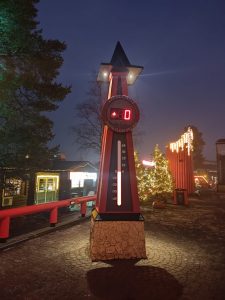 Desayunamos en el hotel e hicimos el check out. Vinieron a buscarnos para hacer la excursión de moto nieve + pesca + barbacoa. Nos recogieron en el hotel y nos llevaron mañana y tarde de excursión. Cargaron la furgoneta con nuestras maletas, nos llevaron de excursión y nos dejaron en la estación de tren. Teníamos pensado si nos daba tiempo dejar la maleta en algún sitio que te la guarden y dejar en consigna la maleta. Ir al centro de la cuidad, la plaza principal y calle de al lado. paseo por la ciudad de Rovaniemi: Lordi Square, donde podrás patinar sobre hielo, la calle Koskikatu y la calle Koskenranta para ver el puente y el río congelado, pero no nos dio tiempo, la excursión se alargó más de lo previsto.